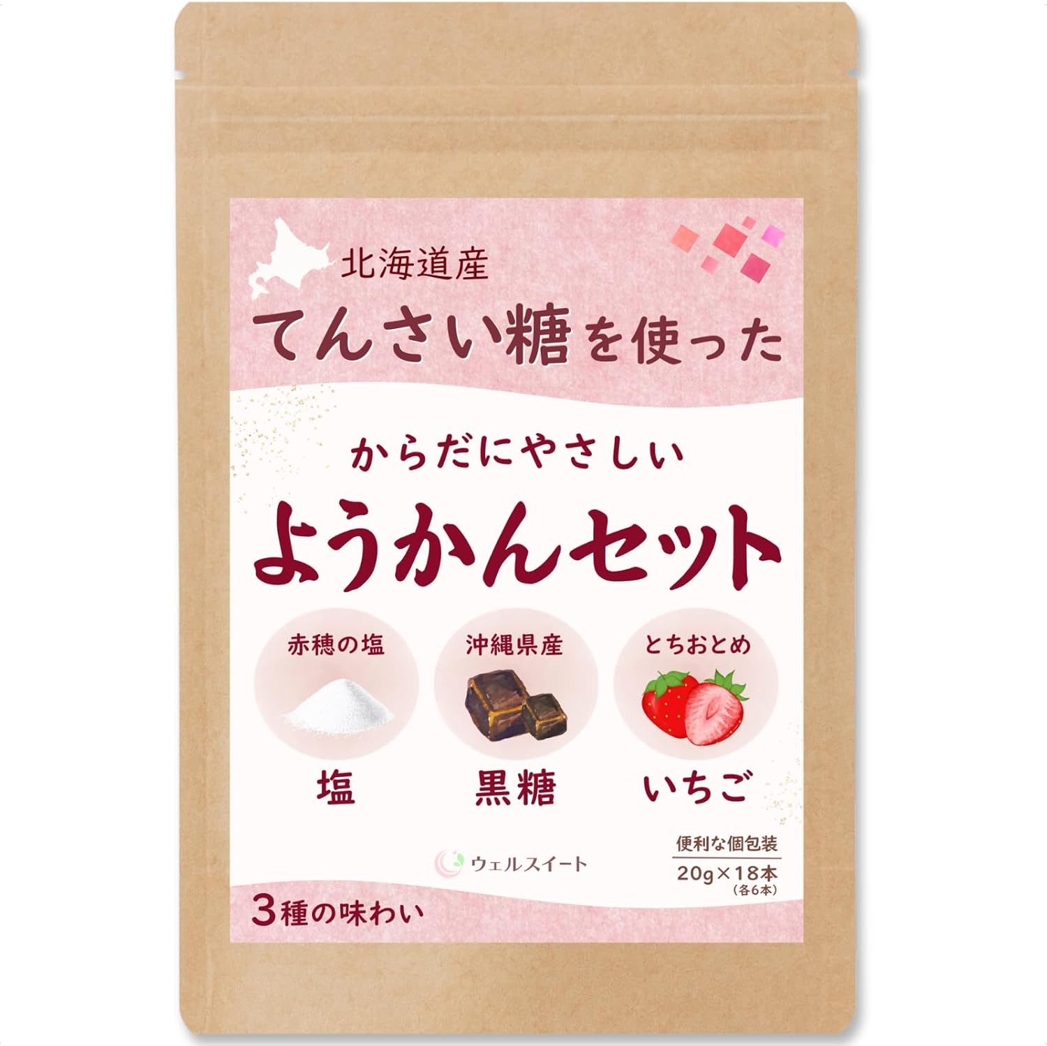 ウェルスイート ミニ 羊羹 セット (塩/黒糖/いちご) ようかん 北海道小豆 × てんさい糖 20g×18本
